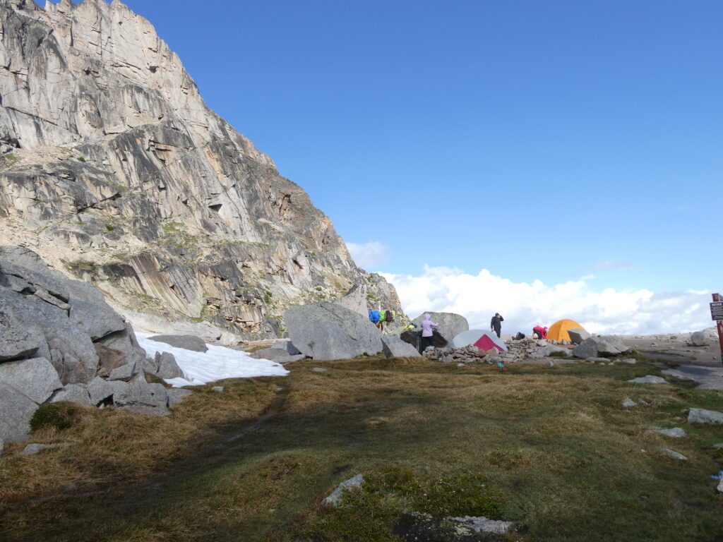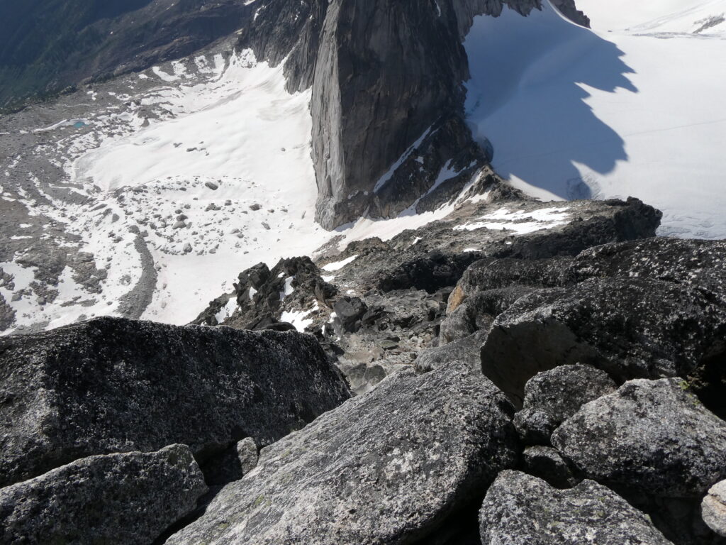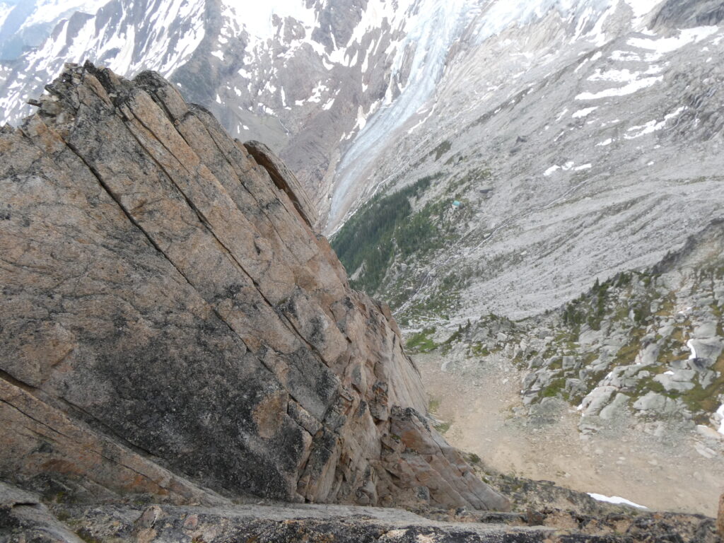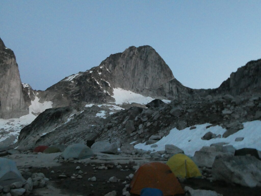 Arriving at the Applebee campground (which sits on top of a granite dome above the glaciated terrain), we were amazed by the exposure of the site, the number of other visitors, and the incredible granite spires of Snowpatch Spire and Bugaboo Spire.