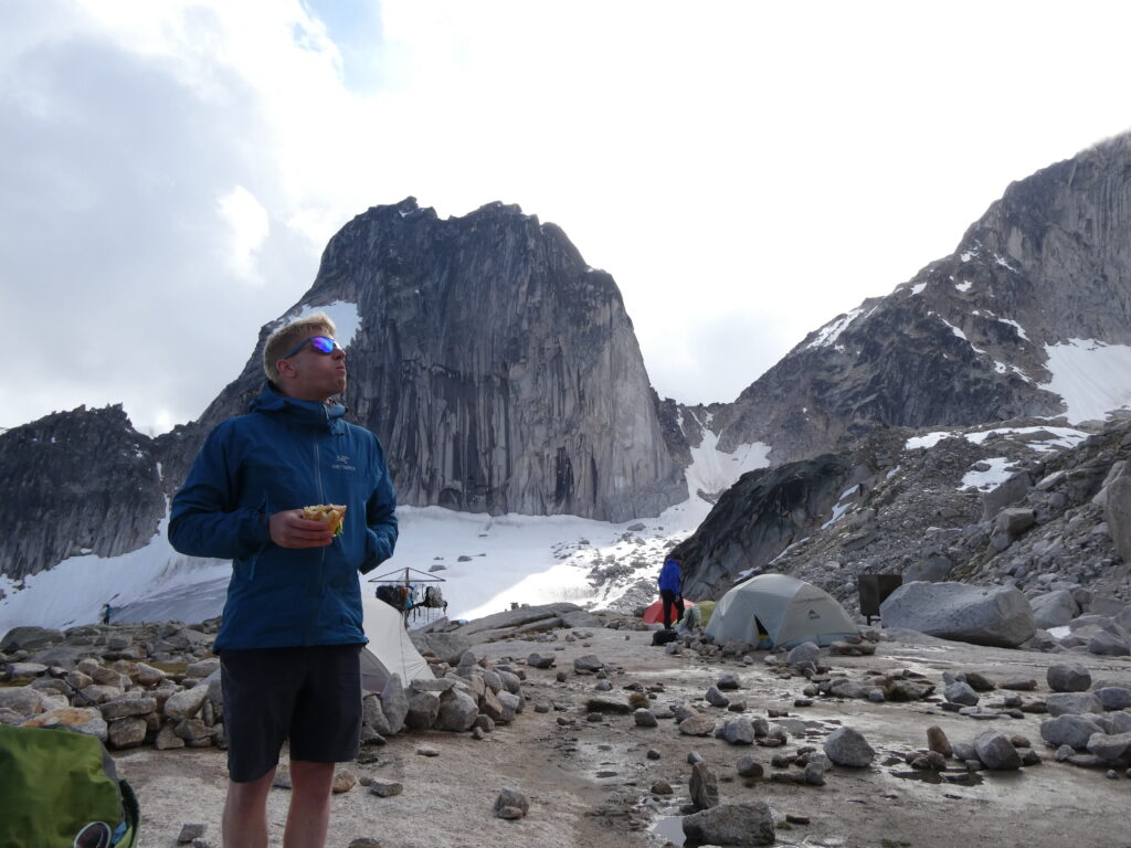 We slept a good 9 hours after climbing the Bugaboo Spire. Taking an easy morning to relax and replenish our calories, we were greeted with overcast weather and intermittent rain. We realized how lucky we were to get perfect weather the day before.